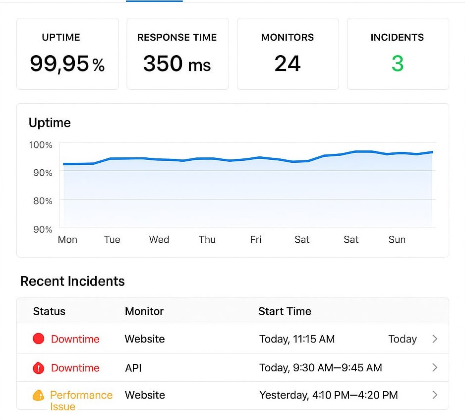 ما عملکرد وبسایت شما را بهصورت مداوم پایش میکنیم، تا در لحظههای حساس هیچ اختلالی مانع تجربه کاربر و اهداف فروشتان نشود.